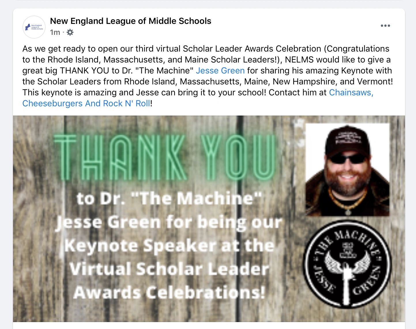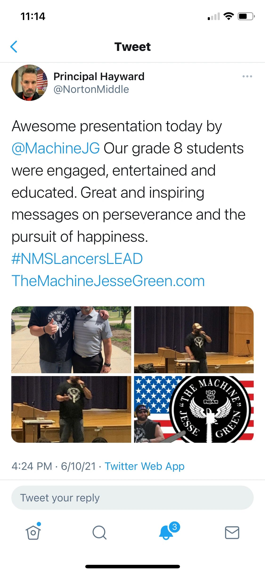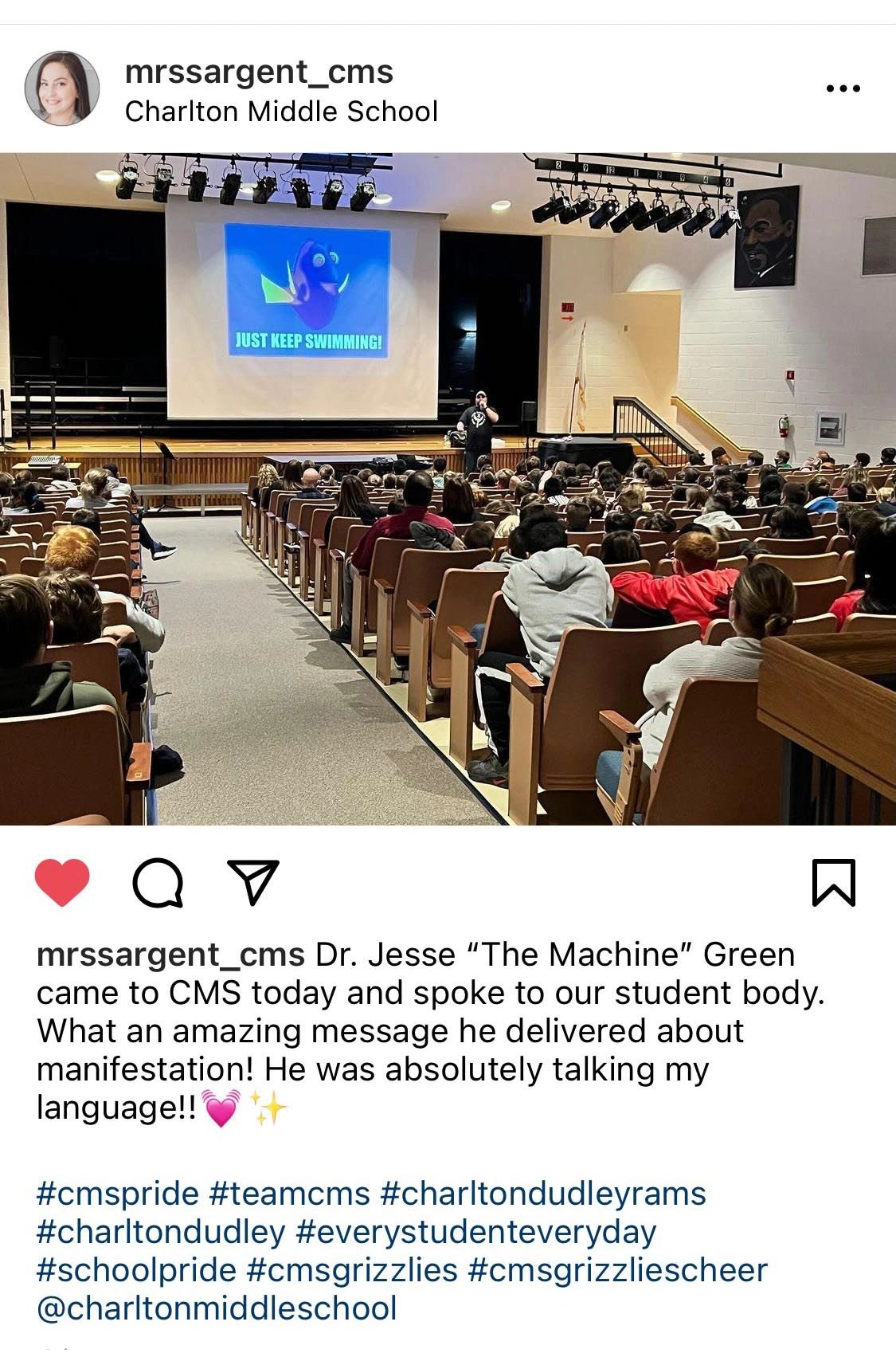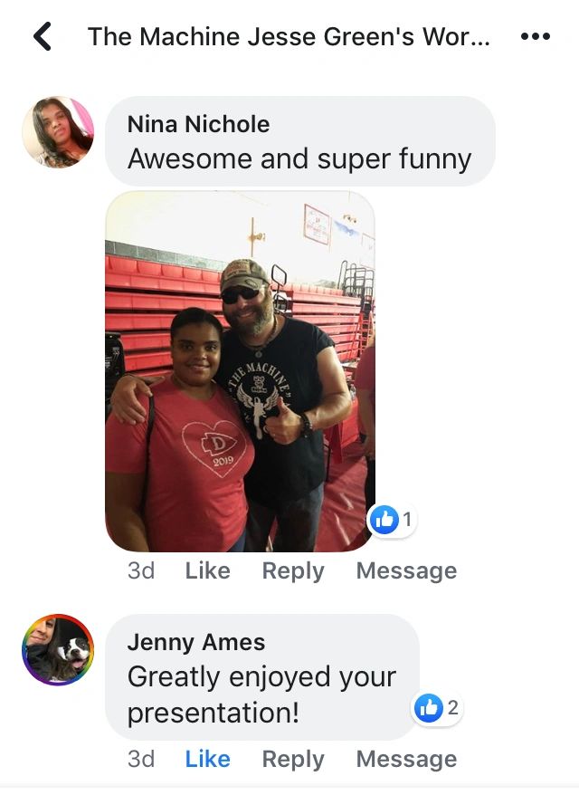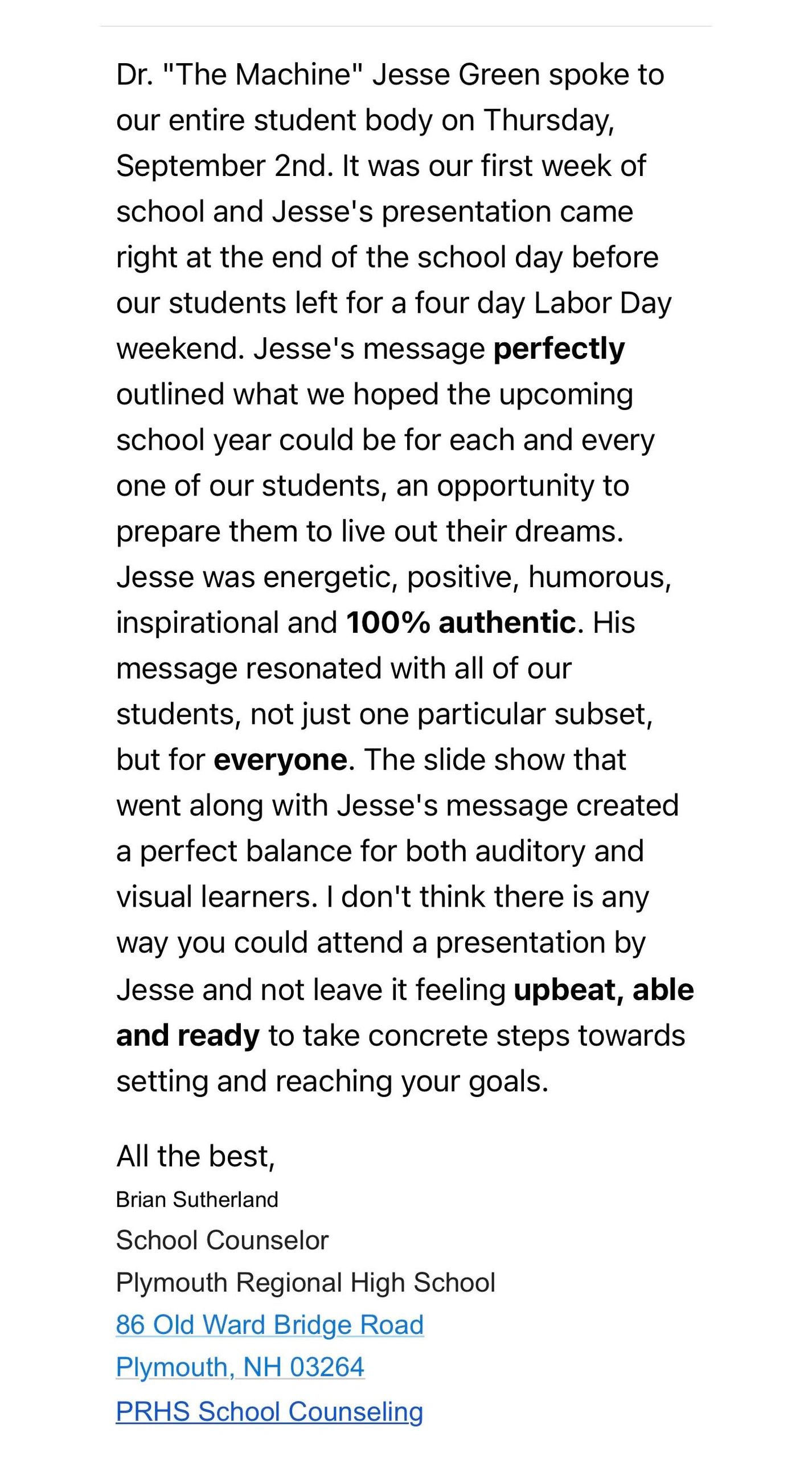 Hull High School seniors were fortunate to hear Jesse’s message about setting goals, reaching your dreams, and using failure as a platform for success. Not only was Jesse’s upbeat presentation engaging, it fit in perfectly on our seniors’ last day of school. Jesse boasted a refreshing style that even our superintendent emulated the following year on teacher back-to-school day. Ultimately, “The Machine” Jesse Green’s advice for living a happier life resonates with people of all ages and we look forward to hearing from him again!